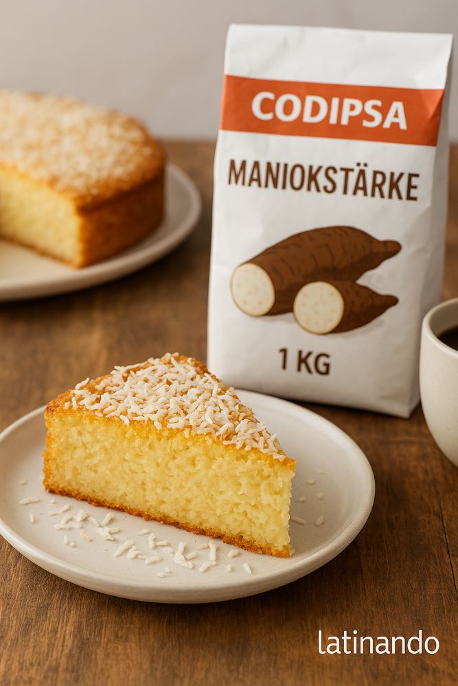 Bei Latinando.de findest du authentische Zutaten direkt aus Lateinamerika. Unsere Maniokstärke Codipsa 1 kg stammt aus Paraguay – 100 % natürlich, fein gemahlen und perfekt zum Backen von Kuchen, Pan de Yuca oder eben dieser köstlichen Torta de Yuca y Coco.
